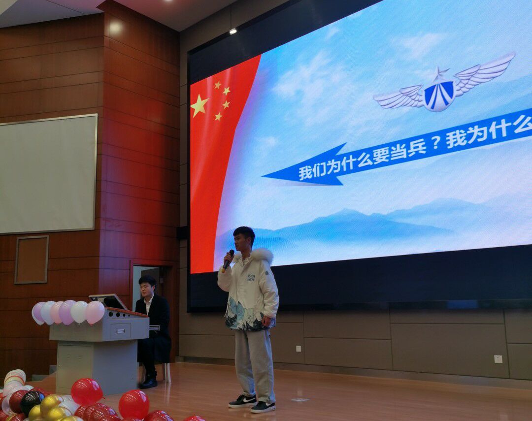 活动还邀请了我院法律事务班级退伍军人罗一鸣同学介绍了他的军旅生活,展示了军人更为真实的一面。罗一鸣同学介绍了军人待遇、军人退伍国家政策、在部队的学习情况等,同时也分享了军旅生活为他带来的自律、认真、正直和刚毅等美好品质的锻炼经历。