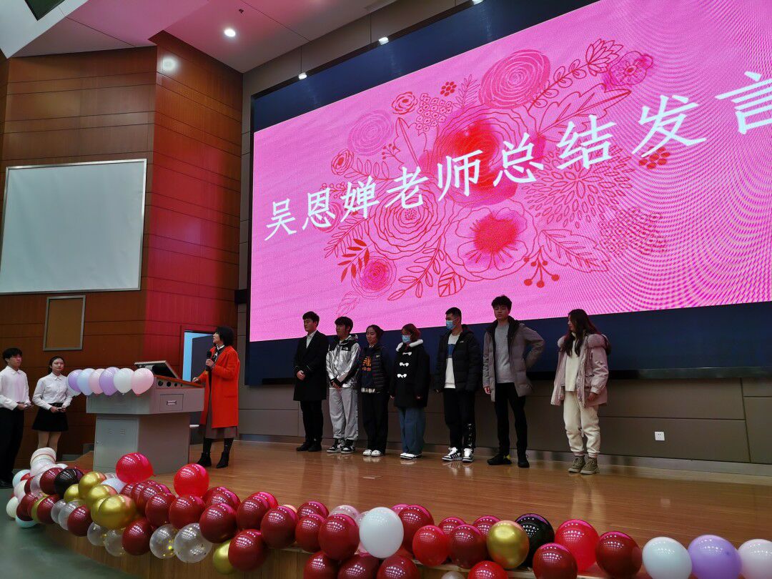 活动还对本学期早晚自习及上课表现较好,无一缺勤和旷课请假的全勤同学和表现优秀的朋辈导师进行了颁奖表彰。会上还对各班班长进行鼓励,期待他们在今后的班级工作中有更好的表现,带领班级向更好的方向发展。最后,辅导员吴恩婵老师总结了本学期20级全体学生的学生情况,从学生思想动态,参加活动情况,获奖情况、重点学生关注情况等方面,一一进行了深刻的分析,鼓励同学们加强时间管理能力,更加积极的参加校内外学生活动,多进图书馆,加强运动锻炼,做到学习生活两不误。最后给所有的同学布置了寒假作业,再次叮嘱同学们认真复习,诚信考试。