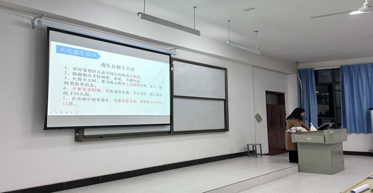 介绍完案例后,余老师用生动传神的方式为同学们传授火灾逃生自救十大法,让同学们在面对火灾时不再手足无措,在面对火灾时有一个清晰的思维,提高自己的逃生能力。