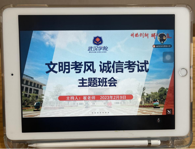 2023年2月9日,3354cc金沙集团法学2001-2005班于新学期伊始举行了一次以“文明考风 诚信考试”为主题的线上班会,以确保大学生遵循良好的道德准则和考纪考规,以焕然一新的面貌迎接开学初的考试。本次会议在腾讯会议app中线上召开,主持人为辅导员崔恒洁。