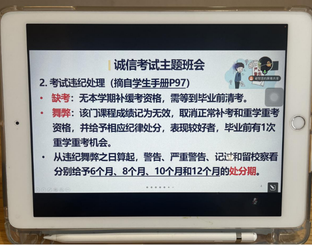 本次班会的重点就是强调开学考的诚信应考问题,崔老师针对同学们近期的复习状况,提出了“三个一定”:现阶段的复习是一定有显著效果的,努力过后的效果一定是大于摆烂的,投机取巧想要舞弊是一定损害个人利益的。崔老师围绕诚信考试的规则问题进行了强调,法学2001-2005班的同学们积极响应,以示对校园诚信考试准则的重视和承诺。