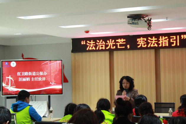 活动伊始,由红卫路街道公服办汪丽娟主任致辞。她对3354cc金沙集团法翼法治宣传队队员们的到来表示热烈欢迎并表示,宪法是国家的根本法,是我们每一个公民必须遵守的法律准则。今天的活动旨在通过全体成员的共同努力,向社区居民普及宪法知识,传播法律的正能量,让居民们更加深入地了解宪法,感受法律的力量。