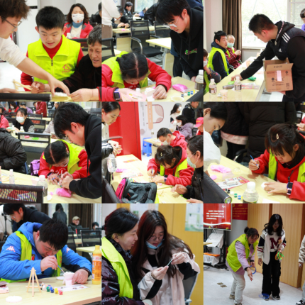 阳光透过窗户,照耀在每个人的心头,活动的结尾,队员们带着温暖的笑容,与特殊群体居民来了一场心与心的交流。他们细心地引导着社区的残障人士参与手工和绘画活动,轻声细语地指导每一位参与者,让他们用粘土捏出美丽的图案,在石膏上勾勒出五彩斑斓的世界,并鼓励每一位残障朋友根据自己的想象和喜好,自由地表达内心的世界。笑声和欢谈在空气中回荡,志愿者们耐心地帮助调配颜色,解答疑问,一同分享创作的乐趣。在这里,没有障碍的界限,只有心与心的交流,以及手工艺术带来的纯粹快乐。