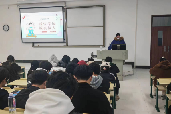 最后,辅导员许靖老师对此次班会做出总结。许老师指出期末即将来临,同学们要珍惜时间,能够有规划的做好复习,为期末考试做足充分准备。同时他还希望同学们能够明白,“诚信”并不只是在考试中,更要体现在生活之中。作为一名大学生,要始终做到诚实守信、言行一致、言出必行,要尊重他人,遵守承诺,要以真实的自己面对世界,让世界看到我们的真实。