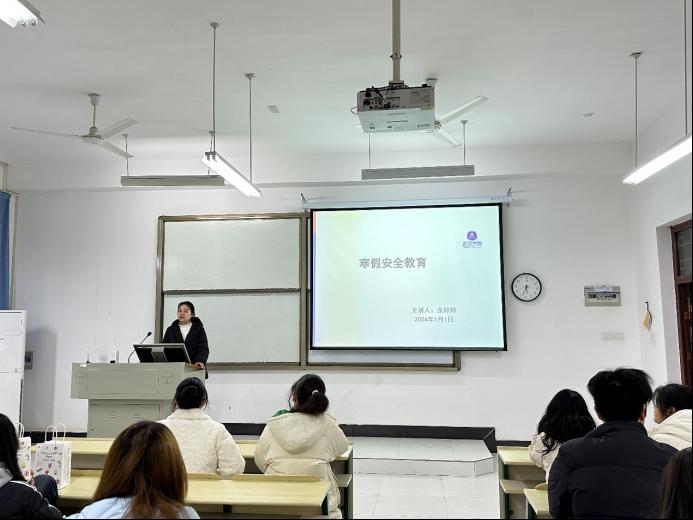 法律事务2303、2304班于2024年1月1日晚在学1105室开展了“寒假安全教育”主题班会。旨在增强学生们的寒假安全意识,确保大家度过一个愉快、安全的假期。班会重点围绕宿舍安全、考试纪律等方面讲述。本次班会由辅导员余婷婷主持,法务2303、2304班全体同学参加本次班会。