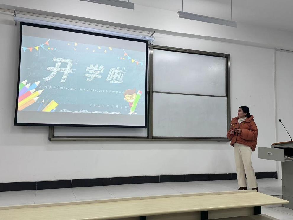 为增强同学们的安全意识,注意校园财产安全,树立新的学习目标,鼓励大家不断进取,法学2301-2305班、法律事务2301、2302班于2024年3月3日开展“开学第一课”主题班会,此次会议由辅导员王平波主持,全体同学共同参加。