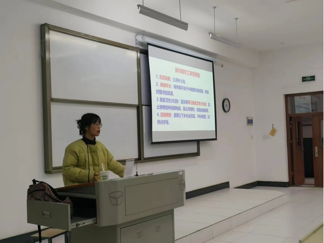 最后,辅导员崔恒洁进行班会总结,肯定了班级同学们在上一学期学习、生活中取得的优异成绩和积极变化,希望同学们在新的学期能够继续努力,不断完善自己。