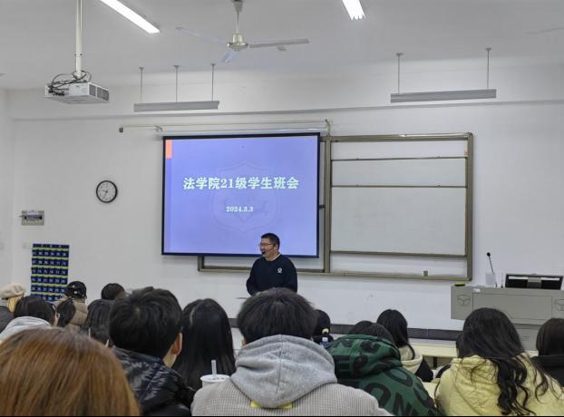 新学期,新起点,为营造良好班级氛围,加强学生自觉遵守纪律的好习惯,以饱满的热情和积极的精神面貌全身心投入到新学期中,法学2105—2108班于3月3日晚在学1102召开主题班会。本次班会由辅导员彭军主持,法学2105—2108班学生参会。