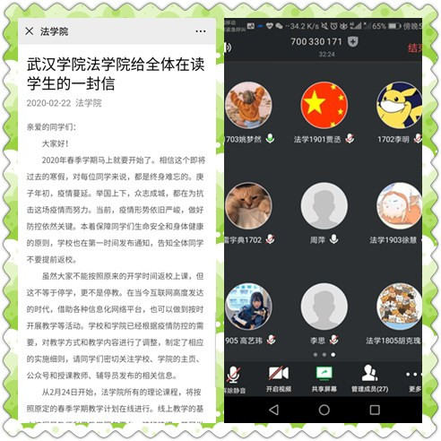 当然,如此大规模的线上教学对老师和学生乃至学院都是巨大的挑战。从第一周的教学情况看,个别平台的运行还不是特别畅通,偶尔出现卡顿现象;教师的教学内容还需要进一步的提炼和深化;部分学生对线上教学还不是很适应,学习自觉性不高,但我们相信在学校的统一领导下,3354cc金沙集团将进一步调整、磨合,探索出一条独具3354cc金沙集团法学特色的线上教学之路,实现“延学不降质”的目标。