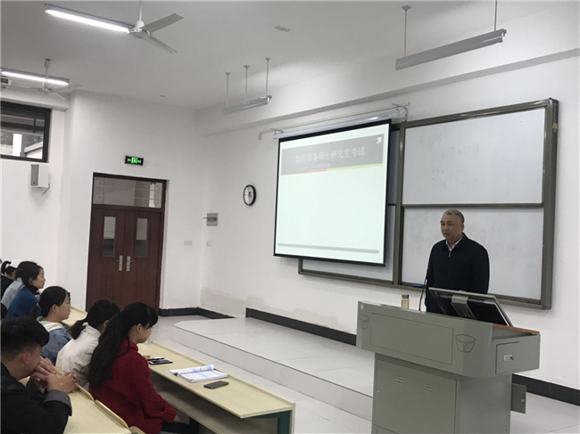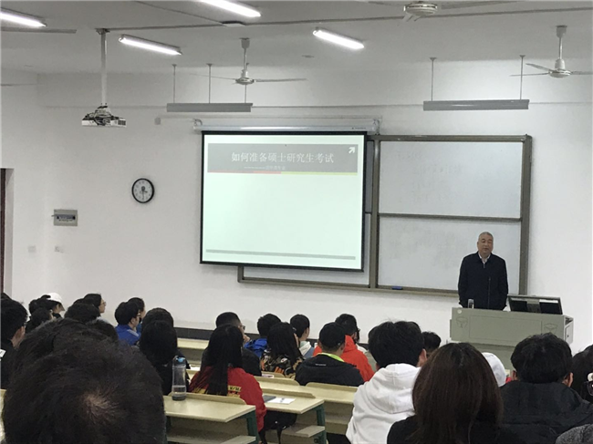 本次考研讲座得到了众多老师,同学的共同关注。我系王广辉教授致辞并宣布讲座开始。讲座期间,王广辉教授向同学们介绍了研究生考试的意义和就业前景以及如何准备硕士研究生入学考试。