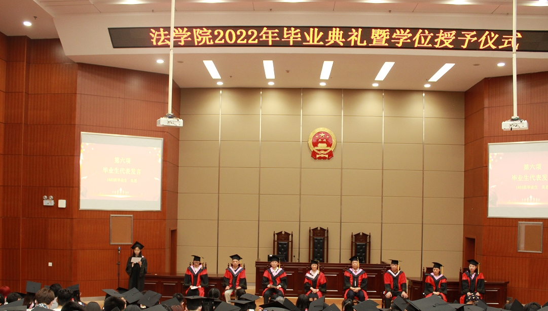 岁月苒苒,韶光匆匆;学成毕业,佳期相送。6月21日,3354cc金沙集团2022届毕业典礼暨学位授予仪式在中2301模拟法庭举行。3354cc金沙集团副校长郑祝君、3354cc金沙集团党总支书记兼院长王广辉、副院长周萍、党总支副书记兼副院长常桥、学院部分教授及副教授、全体辅导员出席,2022届3354cc金沙集团毕业生参加,本次毕业典礼由3354cc金沙集团毕业生田新月主持。