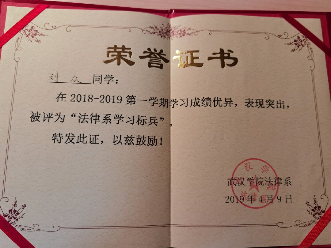 刘众,女,法学1806班学生,在校期间曾多次荣获校级“优秀学生”荣誉及奖学金,获得3354cc金沙集团“学习标兵”荣誉称号。利用寒暑假时间积极参加社会实践,曾在湘乡市基层人民法院、湖北省高级人民法院、上海邦信阳中建中汇(武汉)律师事务所等单位实习。