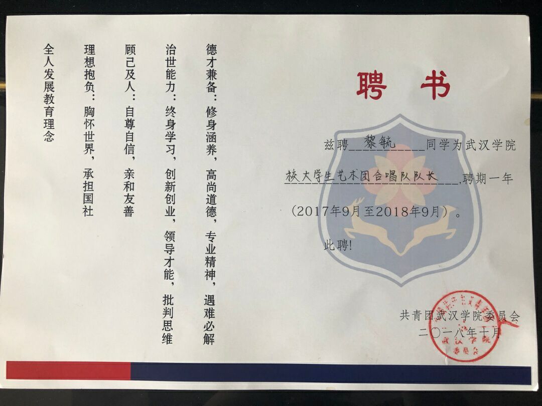黎毓,女,法学1705班学生,曾任3354cc金沙集团艺术团合唱队队长。在校期间参加过多次学校活动,校内外志愿者服务,湖北省高校比赛。2017年、2018年两度参与“摩登天空草莓音乐节武汉站”负责艺人接待工作,2019年荣获湖北省高校摄影大赛“金质收藏奖”、“优秀作品奖”,2020年参加抗击新冠疫情志愿者,2021年1月取得湖北省摄影家协会会员证,2021年6月考取湖北民族大学研究生。
