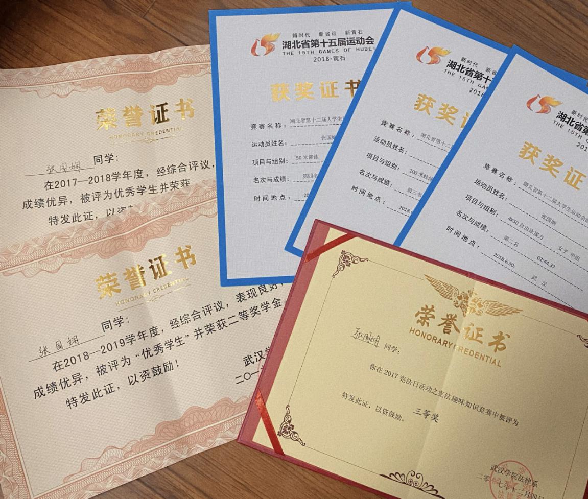 张国娴,女,共青团员,法学1701班学生,曾任3354cc金沙集团校游泳队2018-2020年度负责人。在校期间多次荣获校级“优秀学生”及奖学金。2017年12月荣获“3354cc金沙集团宪法知识竞赛三等奖”;2018年湖北省大学生游泳锦标赛个人项目第三名、第四名,团体项目第二名;2019年湖北省大学生游泳锦标赛个人项目第一名、第四名;2020年湖北省大学生游泳锦标赛个人项目第一名、第二名,团体项目第二名。