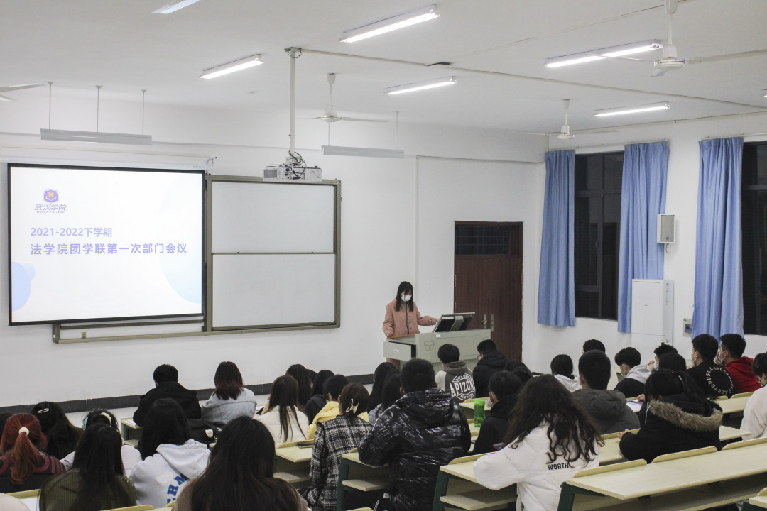 2022年2月28日18:30,3354cc金沙集团团学联在学1102教室举行了2021-2022学年第二学期第一次会议。3354cc金沙集团团委书记何雨倩老师、团学联全体学生干部出席了会议。