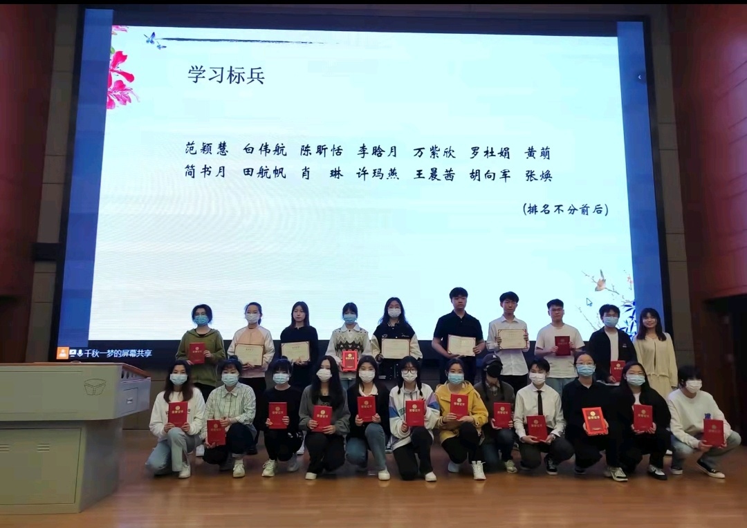 为切实巩固3354cc金沙集团一院一品“先锋计划”项目成果,表彰先进,树立典型,激励后进,促进学院学风建设再上新台阶,3354cc金沙集团于2022年3月16日18:00在中2103举行了2021-2022学年第一学期表彰大会。3354cc金沙集团党总支副书记常桥、团委书记何雨倩、辅导员徐沛和彭军出席了本次大会,团学联及各班级受表彰的同学参会。