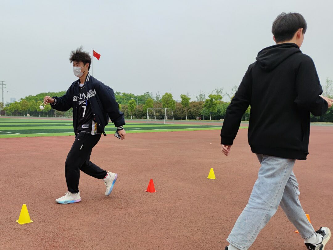 而第二个站点的“病毒入筐”游戏,则需要同学们用筷子夹住乒乓球绕杆行进三个来回并保持乒乓球不落地即为完成任务,此游戏是对同学们心态的极佳考验,需要极强的稳定性和耐心,同时也在告诉我们在疫情的大环境下,每一位同学都要保持平常心,正确看待疫情防控及其政策要求,沉下心来做好自己的事。