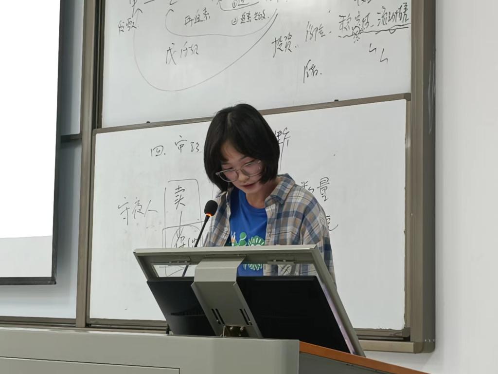 最后,张婕老师对本次读书分享会做了点评总结。张婕老师首先针对各个选手的表现分别做出了分析评价,并提出要注意“分享”二字,而不是仅仅念出文字。同时提出在阅读时或在今后的学习生活中,遇到困惑、疑虑乃至否定自己时,唯一要做的就是不要丧失对自己的信心,咬牙继续坚持下去,延伸自己的阅读,拓宽自己的思考边界,时间和知识终将能够带领我们走出黑暗和泥潭。