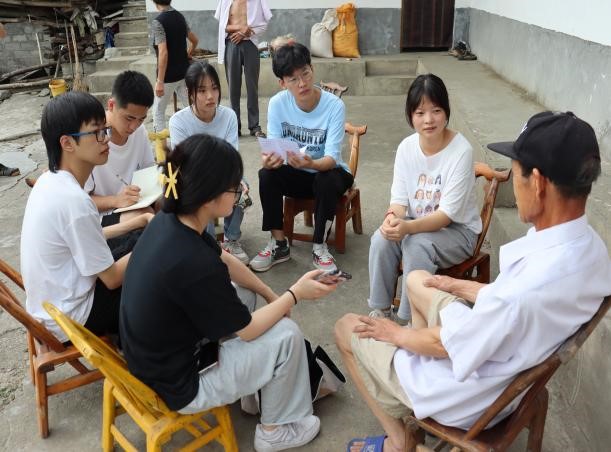 沿着山路走,上坡又下坡的崎岖小路对队员们来说也是不小的挑战,从上山到下山,河流上游到下游,从地里到田间,队员们绕着朱家沟村寻访到十来户人家,有退伍军人、老党员,还有一位烈属。