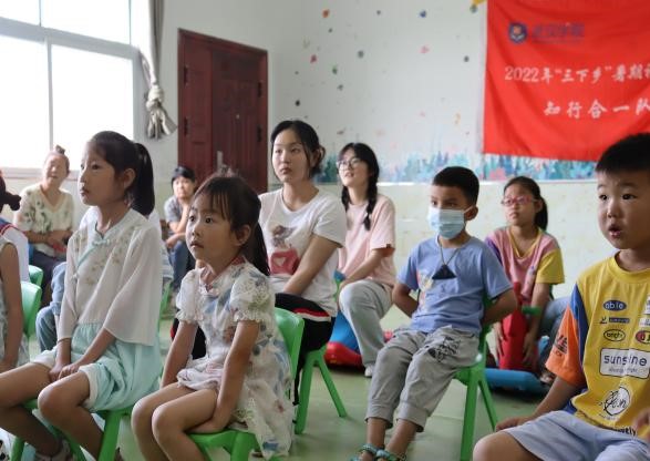 实践队的队员们借用村里托儿所的场地组织了一场别开生面的红色课堂,由队员张洹郡担任主持人,李晗月担任主讲人,向招募的5至12岁的15名孩子们讲授中国共产党和中国共青团的相关理论知识。从中国共青团的团史、入团要求到中国共产党的性质、宗旨……课堂上孩子们积极发言,表达自己对党团的认识和渴望加入中国共青团和中国共产党的愿望。