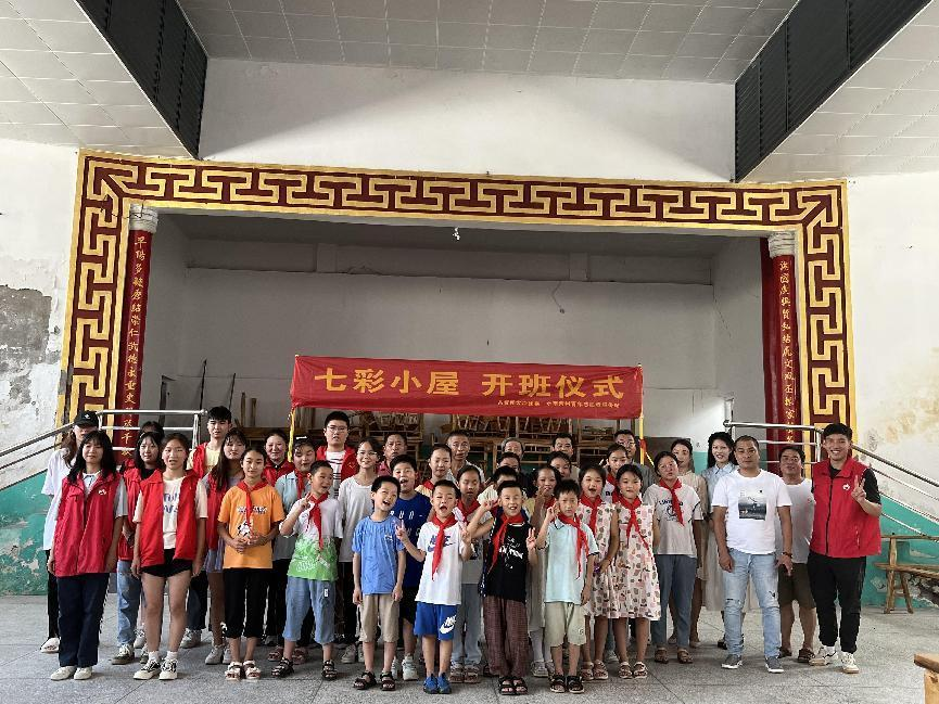 纪念先烈仪式结束后,由大学生支教志愿者和水南湾村委会等成员们一同来到水南湾大礼堂正式进行“七彩小屋”结营仪式,首先由志愿者大学生带领高年级同学对改编版的少年中国说的齐声诵读,“水南湾青年,今日之自由则水南湾自由,水南湾青年美哉!我水南湾之士展鸿鹄之志,壮哉!我水南湾青年创鹏程万里,今日我为水南湾青年,明日我为水南湾栋梁,携手努力共奋斗,成就水南湾美好梦想。”在声声诵读中,每一句都诉说着同学们对家乡水南湾的深深热爱之情,也将未来建设家乡的种子埋在同学们的心中。