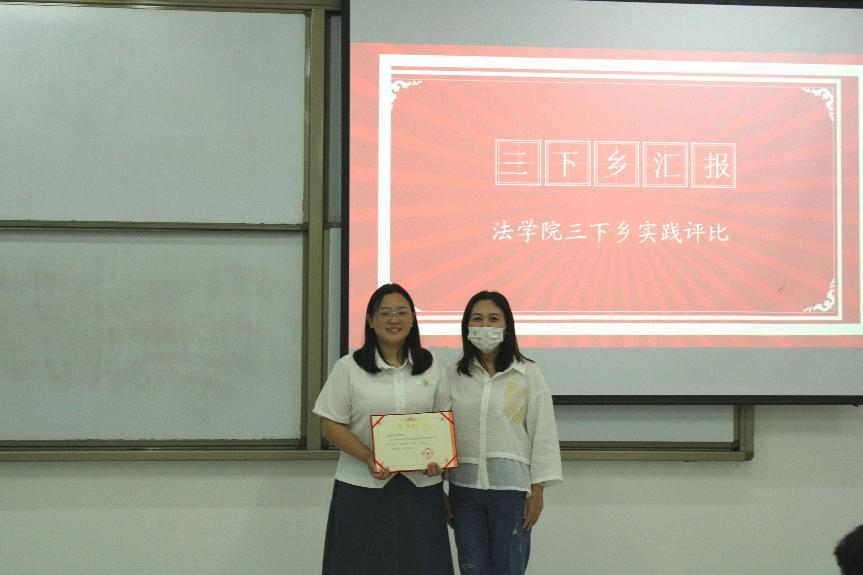 展示中,20级学生游华燕代表榴莲夏令营团队进行展示,她提到,在支教前队友们根据小朋友的学习阶段,都制定了不同的支教计划,充分做好了支教准备工作,共同营造了良好的团队氛围,实践成果也得到了社会一致好评。在王诗玥团队中,成员们到达刚完成脱贫的张北县,进行了深入参观咨询,深入当地人的生活,利用自身专业优势进行普法宣传,在实践中不断实现自我价值。