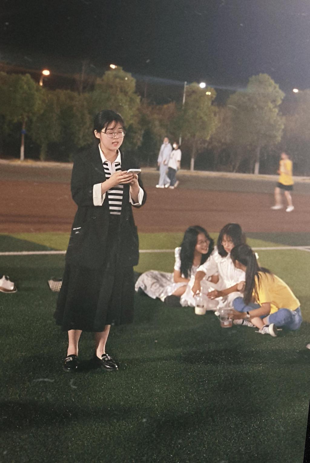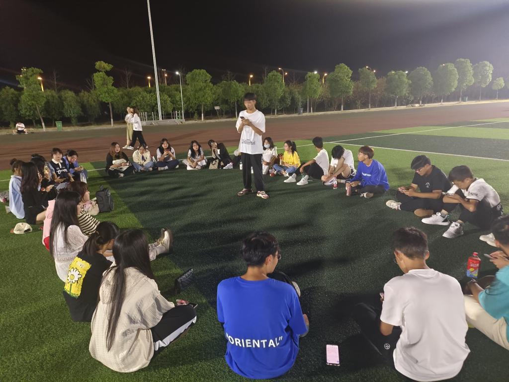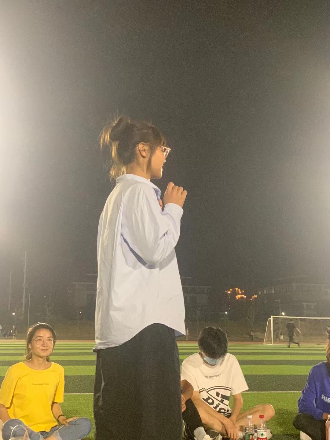 最后一个节目是由张欣雨和刘韩颖同学表演的双人舞蹈《危险派对》,晚上的夜空被灯光晕开了一层光幕,悦目的舞蹈,捎来了同学们灿烂的笑脸。在操场的一角,秋日的余韵花香环绕,我们坐在“幸福的草坪”上,展现各自的优点,相互学习,相互赞美,彼此照亮。