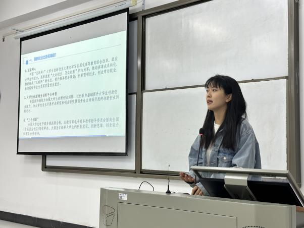 法学1902班的王夏欣同学则向大家介绍了创新创业比赛的类别和如何培养创新创业思维,并通过列举生活当中的实例让同学们对创新创业有了更清晰的了解。