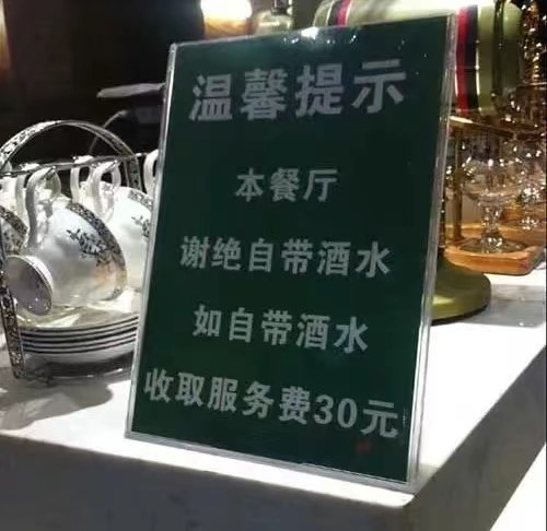 有朋自远方来,不亦乐乎,随着社会经济水平的提高,大家在外就餐的频率越来越高,尤其当好不容易遇到假期,一群朋友相约吃饭、娱乐,当大家直奔饭店、KTV等场所,却被告知“本店禁止自带酒水”。相信大家都看到过这种餐饮业“禁止自带酒水”或者收取开瓶费的字样,那么问题来了,这种经营者“禁止自带酒水”的“规定”看似名正言顺,但它真的合法吗?