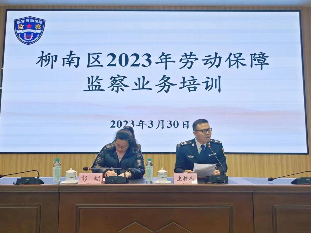 袁志超于柳南区2023年劳动保障监察业务培训任主持人
