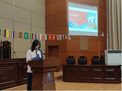 大会最后,学术代表潘紫睿同学进行总结发言,她表示虽然在会议过程中同学们仍存在语言表达不规范、提出建议不细致等问题,但同学们都能够大胆发言,充分表达各方意见,进行争论。如今是经济全球化的时代,本次模拟联合国训练大会加深了同学们对于联合国的了解,引领同学们更加关注世界问题,聚焦全球热点,明确新时代中国青年将面临的严峻挑战。