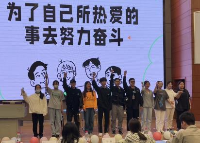 参赛团队自活动通知发布后便开始进行准备,时间紧凑,同学们挤出自己的课下时间,全身心投入情景剧的排练中,反复确认动作、表情、眼神,做到每周彩排三次以上。通过一次又一次的练习,同学们的演技不断提高。每当遇到困难,大家总会一起想办法,从灯光、道具摆放的位置到ppt和音频的播放等等,在反复的修改下,《反卷总局》的剧本和PPT也越发的完善、丰富。