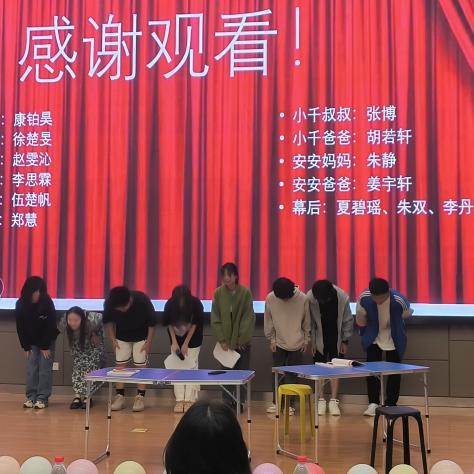 经过初赛的选拔,共有六支队伍进入本次决赛。比赛在主持人精彩的开场词中拉开了序幕。比赛中,《选择》以其真实贴切的视角,关注高考焦虑问题,引起了现场观众们的共鸣,博得了现场阵阵掌声。《小雪花》讲述了两个女孩逐渐化解矛盾的故事,真挚的情感让大家动容。《反卷总局》以幽默诙谐的手法展现他们对“内卷”这一社会现象的反思,亦给大家留下了深刻的印象。此外,《天亮前的夜》、《躺不平卷不赢》、《不做被骗的小傻瓜》等都从各个方面表现了学生对社会问题的一系列反思和思考,展现了当代大学生对重点心理问题的关注。