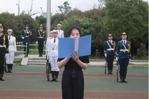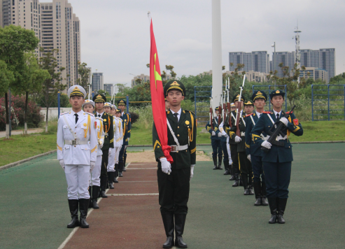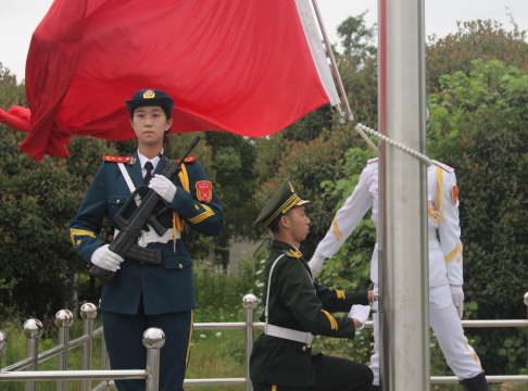 天高云淡,凉风习习,铿锵步伐敲碎晨曦的寂静。国旗护卫队队员们整齐划一,目光坚定,护送国旗入场。全院师生在国歌声中肃立,注视着庄严的五星红旗冉冉升起。