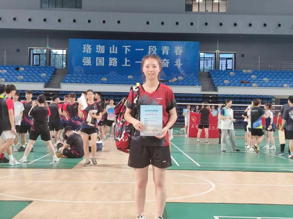 2023年湖北省普通高等学校大学生羽毛球比赛于5月26-28日在武汉大学卓尔体育馆举行。我院22级毛知语同学积极参与,荣获女子单打全省第二的佳绩。