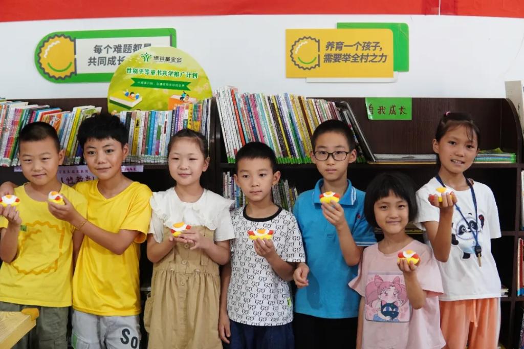 (手工课作品展示,萱萱为图右一)