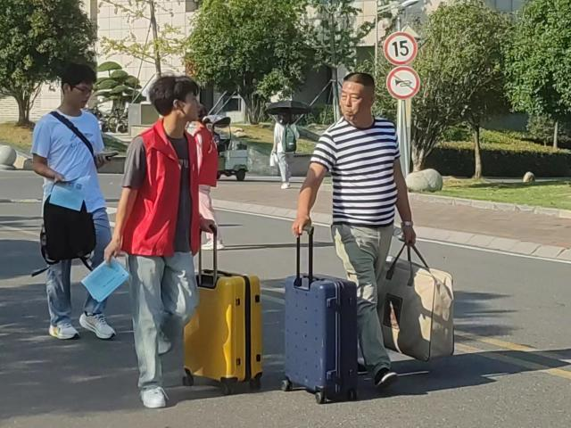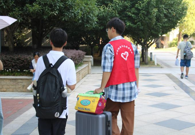 一个个“红马甲”穿梭在校园里,用饱满的热情迎接每一位新生的到来,志愿者们穿梭于校园间,带领同学及家长参观校园,帮助新生搬运行李,使他们感受到武院学子的亲切和热情。而老师们作为学生们坚实的后盾,不辞辛苦,始终坚守岗位,指导迎新的相关工作。