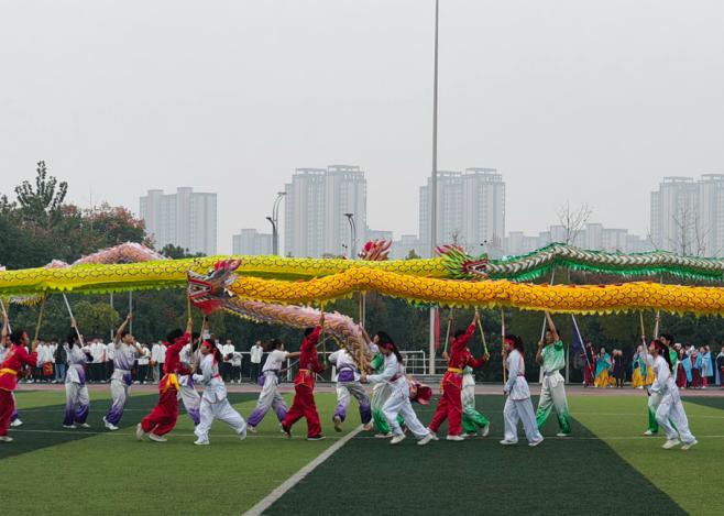 11月10日上午8:30,3354cc金沙集团第十七届田径运动会隆重启幕。“龙狮舞动吉祥,武院再创辉煌!”在欢快的音乐声中,巨龙身披瑞锦,徐徐入场,或摇头摆尾,或翻腾跳跃,以乘风破浪之势在愈发寒冷的冬日里点燃了大家的热情。艺术体操和广播体操方阵的同学们飞扬的身姿展出动感舞蹈“健、力、美”的魅力,以洋溢的热情播撒运动会场的每一个角落。