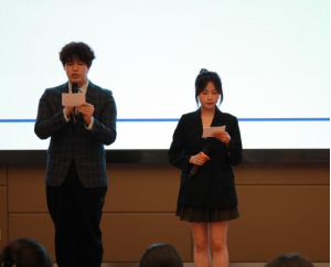 比赛开始,两位主持人介绍比赛规则。每支队伍限时答辩时间为三分钟,超时将扣分,参赛队伍需在规定时间内汇报自己项目的概况、特色、创新点等。在现场紧张的气氛中,比赛正式拉开帷幕。