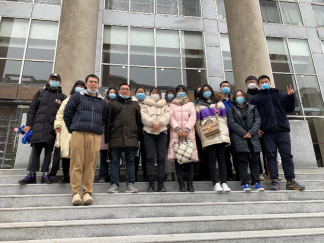 2020年12月14日清晨,我们和带队老师与法院工作人员在江岸区人民法院的大门口拍了一张“全家福”,照片中的我们或面带微笑、或面带紧张,相信这也是实习生第一天来到实习单位内心最真实的写照。