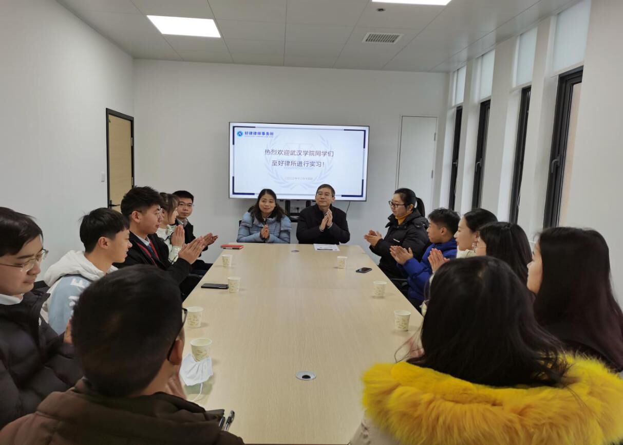 2020年12月14日,按照学院总体安排王幸哲老师将7名学生送至实习实训单位湖北好律律师事务所进行集中实习。好律律所为我院实习生举办了2020年度寒假实习生见面会。会上好律所主任陈亮表示,实习是学生走出校门、走向社会的前奏,是整个法学专业教学的重要环节之一,好律所作为实践教学合作单位,将积极履行律师事务所的社会责任,努力为培养应用型法治人才添砖加瓦。王幸哲老师表示,为期八周的实习是课堂教学的延伸和拓展,让实习生们能够零距离了解和学习法律实务工作,加强对理论知识的理解能力,锻炼理论与实践结合的能力。