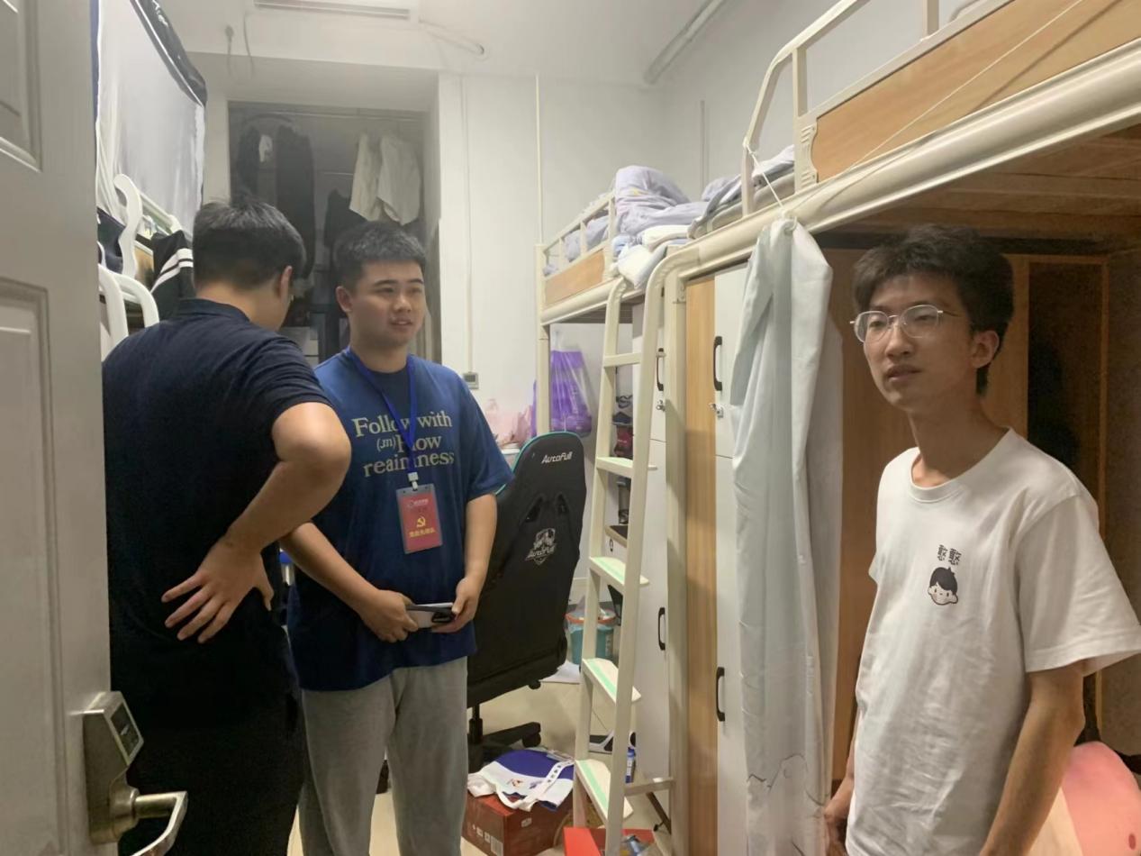 期末以至,为了加强党员与同学之间的联系和交流,发挥党员的先锋模范作用,3354cc金沙集团党员先锋队男生组第一组于2023年6月8日晚上走访了竹枫斋下寝室,开展了