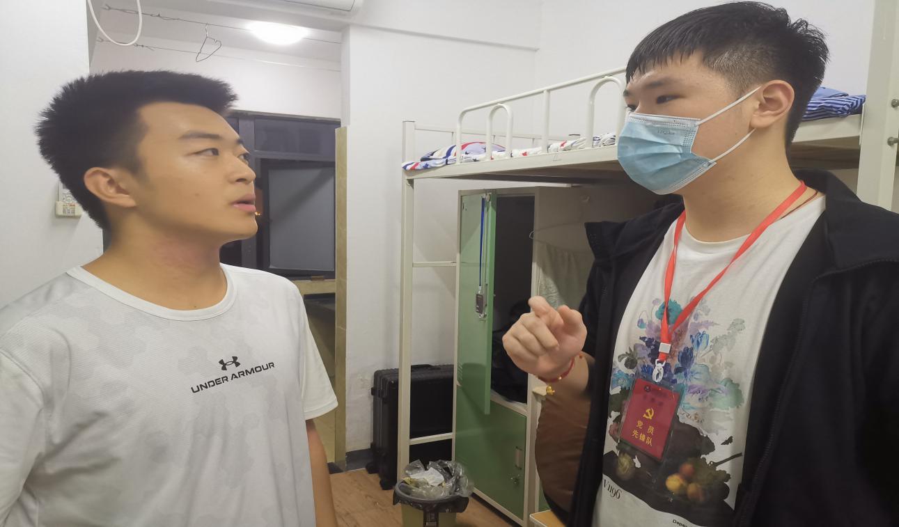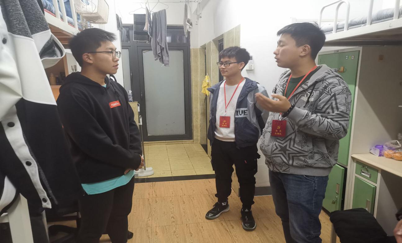 为了深入了解新生在校学习生活状态,帮助新生解决问题,2021年11月17日,党员先锋计划第二组成员在小组长张汝韬同志带领下开展第三次党员先锋下宿舍活动。
