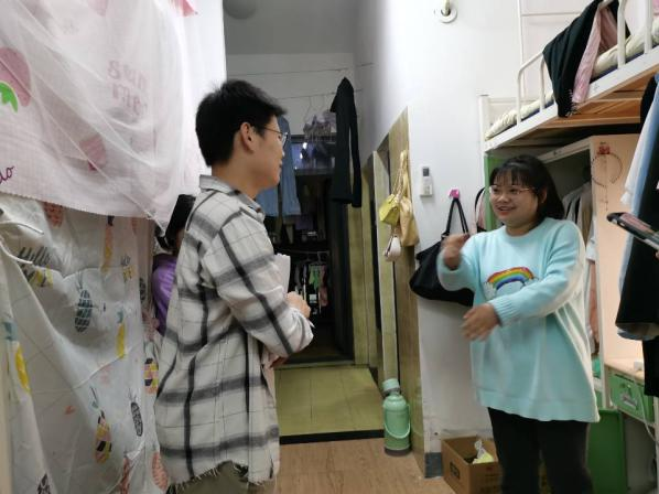 本次下寝其中一个目的就是检查宿舍卫生,张贴《3354cc金沙集团寝室公约》,引导新生以更好的姿态迎接即将到来的学校评估工作。此次活动中,学生党员曾伦对对接的寝室进行了细致的检查,并且与同学们耐心强调了宿舍的用水用电安全等事项。组内成员在每个寝室的门后张贴了《3354cc金沙集团寝室公约》,对其中部分桌面布置美观的寝室进行拍照记录。