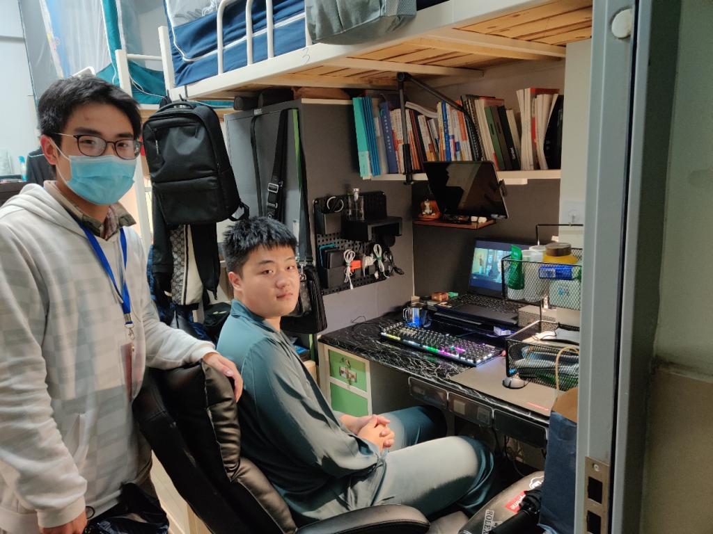 第一,寝室环境和同学们的状态依然是良好。也没有发现违规的电器设备,空气也比较清新。新生们取消了晚自习,所以他们能更早的回到寝室着手自己的事情,相比以往一下子多出的两个小时大家似乎还没有完全能好好利用,大多数寝室的同学们都坐在电脑桌前操作者电脑,。新生同学告诉我们到期末了班级干部手头的任务就会变多,特别是学习委员,因为这学期课程多的原因,期末要收的作业也是成倍的增加,我以自己做学习委员的经验告诉告诉同学,期末学委要收的作业是巨量的,包括课后作业、读书笔记还有实验报告,所以学委一定要学会提前通知同学完成作业,分散作业提交时间,同时动员分组的小组长,协同帮助收集作业,这样能减轻不少的工作难度,同时也能和班上的同学合作,是非常好的办法。